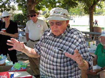members Elinor and Bruce Wilner, in Linköping, JULY 9 F. F. PICNIC Twenty-eight F.F. members and four visitors ate their way through Kentucky Fried Chicken, delicious salads, and desserts at San Jose’s Prusch Park. Several people placed a bid or two on the silent auction items, organized by Dee Gustavson. Several members went home with flower pots, seeds, bulbs, and gardening books in their bags. $110 was added to the club’s treasury from the proceeds of the auction. The group was serenaded by the Ambassadors who are going on the Wisconsin exchange. An energetic group donned hats and gloves in the Friendship Forest to distribute tanbark around the club’s Friendship trees. Don Dillon reported that $250 was collected in donations at the previous meeting in Los Altos. This money was used to hire people to work in the forest. Generous companies donated tanbark and delivered it to Prusch Park. —Dee Gustavson Don