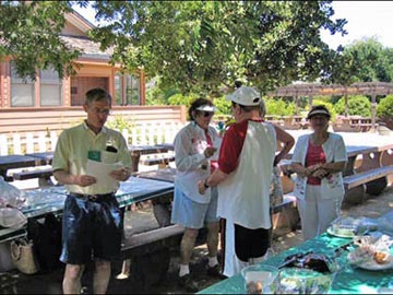 SOUTH BAY AND CENTRAL PENINSULA BRUNCH Janis Maurry’s Los Gatos home was the site of a potluck brunch for the South Bay and Central Peninsula areas on August 26. Nineteen Friendship Force members and friends attended the event, which Janis Maurry organized and hosted. Jerry and Judy Mulenburg brought friends Frank and Gloria Siciliano of Los Altos, who joined the club that day. Conversation topics centered on travel and summer trips—some just returned from the successful Madison-Milwaukee domestic exchange, ably directed by Darlene Boyanich and Roger Riffenburgh, and the upcoming outbound exchange to the Philippines in late October. Announcements were made reminding members of the September 7 invitation to the Philippine Consulate in San Francisco at 10 a.m., and also the next general meeting in San Francisco’s Main Library on September 17 at 2 p.m. Dee Gustavson reported that she’s currently reading the book, “On the Other Side of the Mountain,” (The Friendship Force Story, by Charlene Terrell, published in 1997.) She recommends it to all who are interested in the history of Friendship Force. (Contact Dee or Barry Rader to borrow a copy.) Dee finds it fascinating to read about the development and evolution of the exchanges over the years, and acknowledges founder Wayne Smith and many others who worked hard to fulfill his dream. It’s truly amazing how many lives have been changed around the world, as a result of the many exchanges between 1977 and 2006. In March 2007, there will be a 30th anniversary celebration in Atlanta, GA, commemorating the beginning of Friendship Force. —Dee Gustavson, Central Peninsula Coordinator MILWAUKEE AND MADISON EXCHANGE The twelve ambassadors who went to Milwaukee were Gail Boyd, Robert Cohen, Joy Hewett, Janis Maurry, Donald & Mary Pelland, Barry Rader & Karen McCready, Ann Hayward, Joy Hillman and Roger & Darlene; ten of these also went to Madison. The trip was a great success and a lot of fun. The highlights around Milwaukee were the new Art Museum, going to Miller Park, Lake Geneva mail boat cruise, the Rotary Gardens, and dancing at the farewell party. They did a line dance for us, and Roger & Darlene did a couple of round dances for them, “I left my heart in San Francisco” and “Ciao.” We were impressed with Milwaukee’s energetic spirit. All of the hosts were so friendly and fun. The highlights around Madison were the tour of the Capitol, Monona Terrace and Taliesin (both designed by Frank Lloyd Wright), and House on the Rock. We had opera singers at the farewell dinner in between taking our orders, which provided great fun. All the hosts were great in every way and very accommodating. Madison has the 3rd largest Friendship Force Club, with 280 members. They even got us recruiting for them, wearing vests which they made to attract attention. Their mascot cows were everywhere! Cute too! Everybody had a great time! —Darlene Boyanich & Roger Riffenburgh, Exchange Directors —Photo