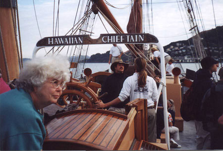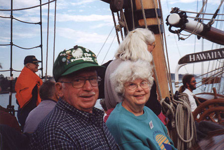 John Randall and Mary Wolfe before the mast on the Hawaiian Chieftain