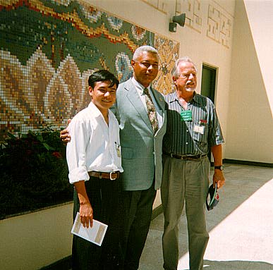 In the inner courtyard of the American Consulate in Ho Chi Minh City. From left: Van Nghi, secretary of the Vietnam-USA Friendship Society, which hosted our group in Vietnam; Charles Raye, US Consul-General; and Dean Batchelder, member of the Friendship Force of the San Francisco Bay Area.